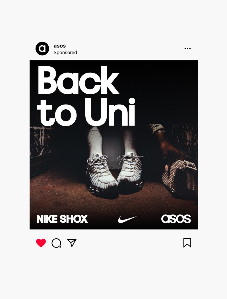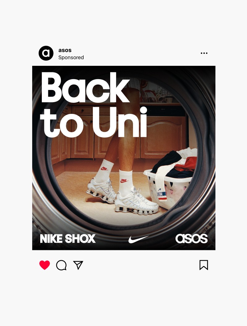 This ASOS and Nike collaboration launched a campaign known as 'Back To Uni'. This campaign subtly encapsulated the process of returning to university, integrating both social media and out-of-home, paired with a video. The visual story reveals a glimpse into the myriad of thoughts occupying a student's mind, with the focus being on Nike's latest collection including the Nike Shox and Nike Cortez.